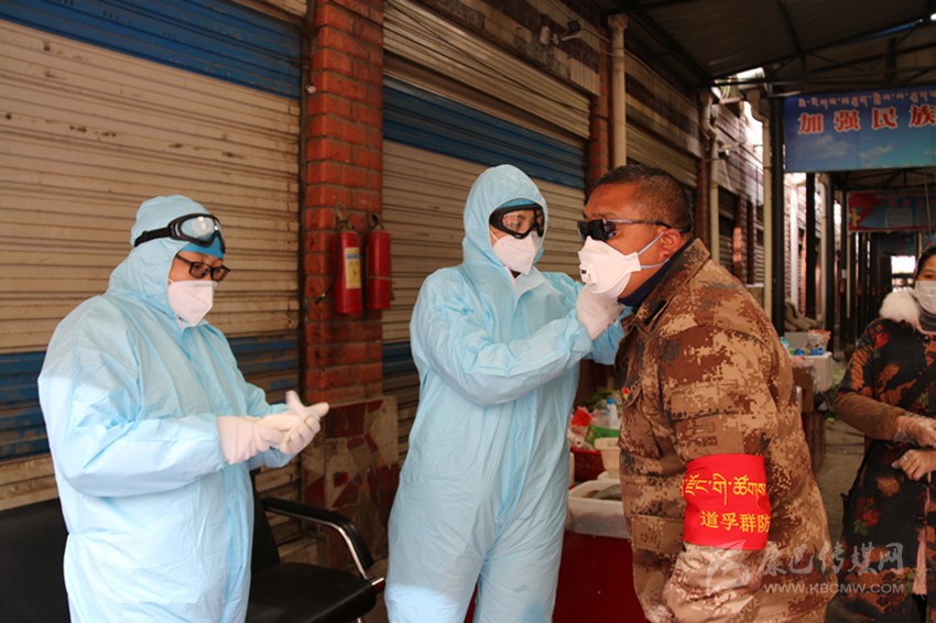 離超市150米處,是道孚農(nóng)貿(mào)市場,市場里很多攤位都空著。記者直往里走,卻被兩個穿著防護(hù)服的醫(yī)務(wù)人員攔住了:“同志,測了體溫才能進(jìn)去購物?!彪S即,一個醫(yī)務(wù)人員為記者測量體溫,一個人員在登記表上鄭重地畫上一筆。