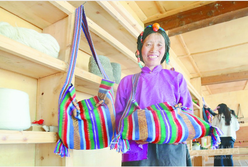 圖為貧困戶(hù)展示親手制作的手工藝品。