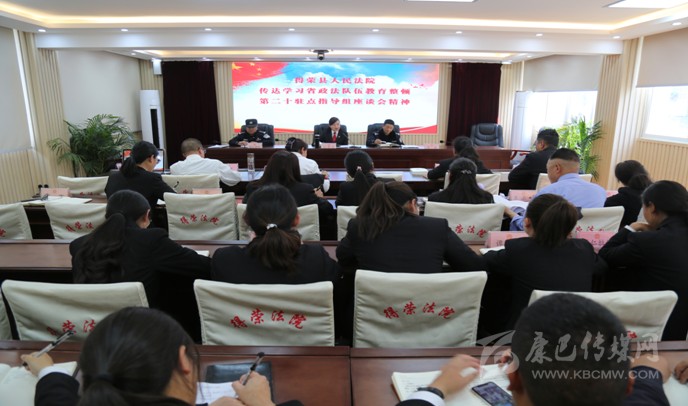 會議傳達了四川省政法隊伍教育整頓第二十駐點指導組(得榮縣)座談會會議精神,根據(jù)省第二十駐點指導組在座談會上指出的工作重點、工作要求,對照我院隊伍教育整頓工作實施方案以及前期開展情況查找差距、增添措施,進一步推動教育整頓的開展。