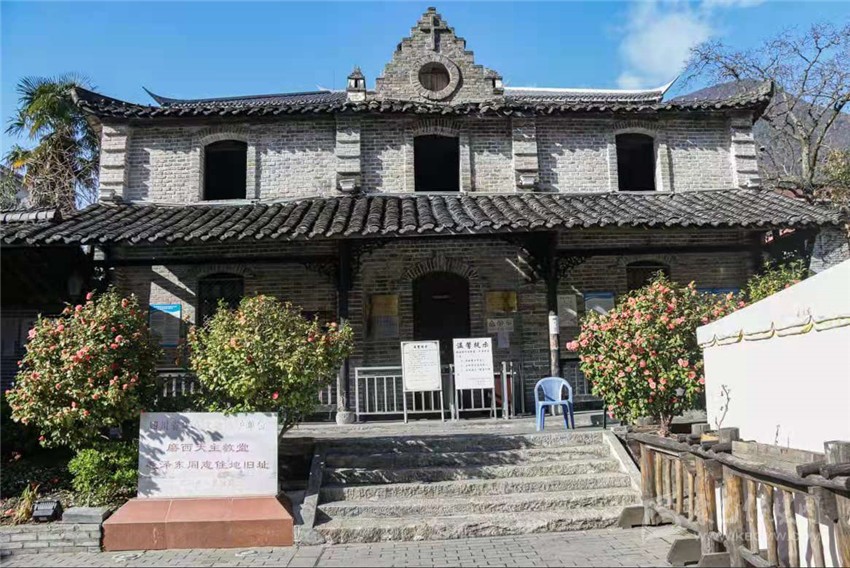 清晨,霧氣氤氳,磨西小鎮(zhèn)宛若仙境。待霧氣散去,暖陽(yáng)升起,記者來(lái)到了磨西會(huì)議舊址——磨西天主教堂。