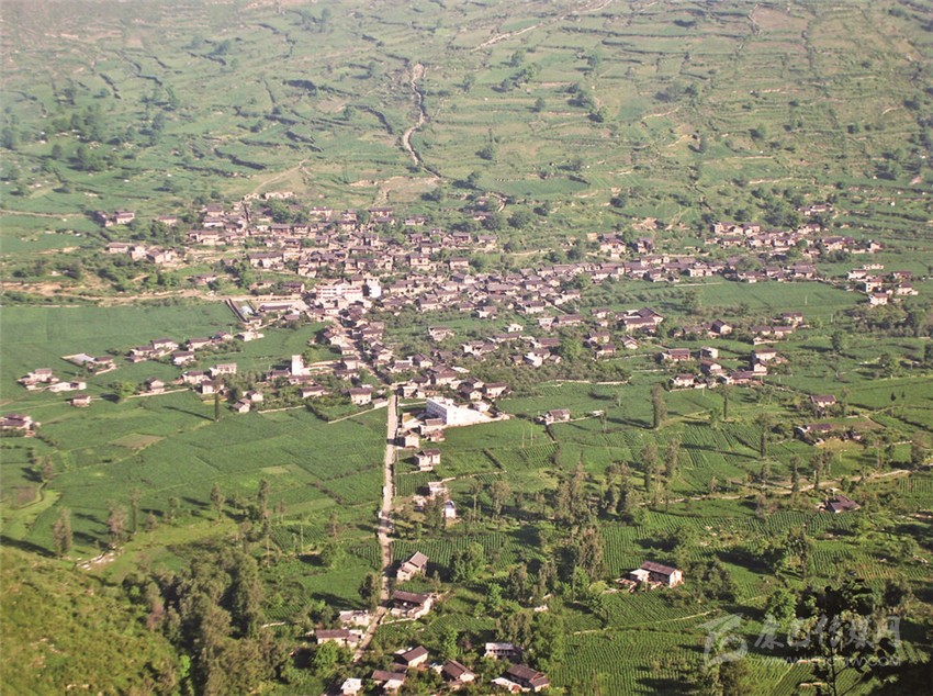 九曲十八彎,車行近18公里,豁然開朗。在平均海拔2280米的“馬鞍形”大山坳里,良田千頃、阡陌縱橫、土地平曠、屋舍樸拙……目之所及處皆如流動的音符,串聯成一曲深春淺夏的“桃花源交響樂”。