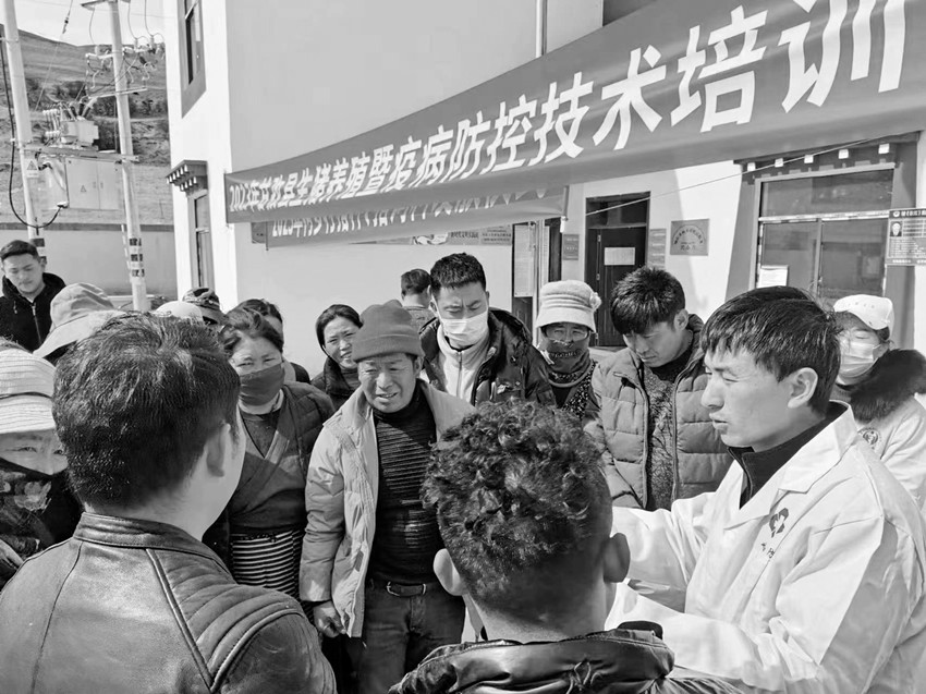農(nóng)牧專家向村民講解養(yǎng)殖技術。