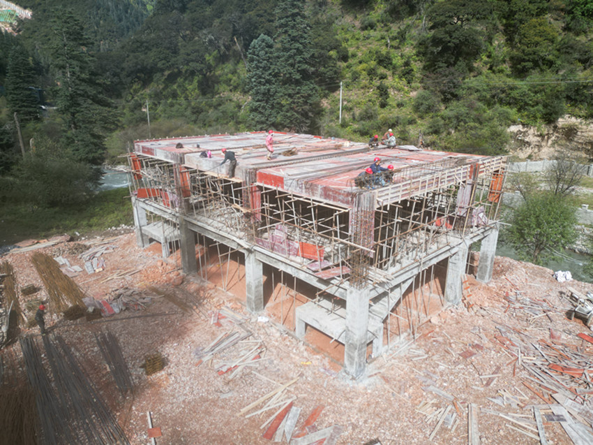 本網(wǎng)訊 近日,筆者走進(jìn)白玉縣蓋玉鎮(zhèn)沙馬鄉(xiāng)德西村菌類加工廠房和銷售超市建設(shè)現(xiàn)場,一座兩層樓房已具雛形,工人們正有條不紊地開展混凝土澆筑、木板拆卸等作業(yè),一派熱火朝天的繁忙景象。