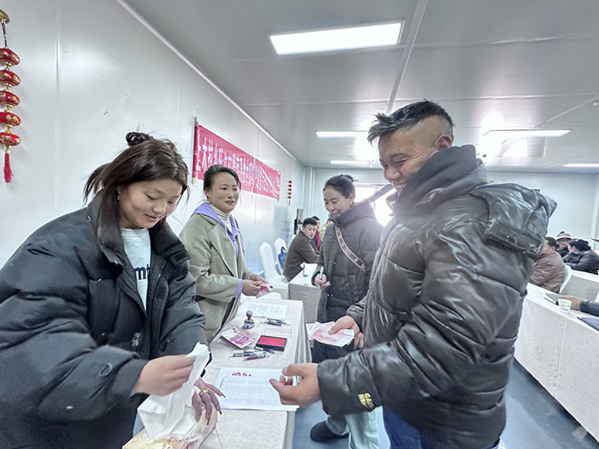 在隨后舉行的分紅儀式上,鄉(xiāng)黨委書記、公司負責(zé)人分別就合作方案、相關(guān)政策進行了宣講,還對集體經(jīng)濟進一步發(fā)展等進行了分析和總結(jié),簽訂了深化合作協(xié)議。分紅現(xiàn)場,村民們有序地對賬、簽字、領(lǐng)取分紅,臉上洋溢著幸福的笑容。大家表示這一切都要感謝黨和政府的關(guān)心關(guān)懷和好政策,更加堅定了聽黨話、感黨恩、跟黨走的信心和決心。據(jù)悉,此次分紅主要是旺達村于2023年7月投入奶茶生產(chǎn)設(shè)備的收入,此次25戶群眾分得12500元現(xiàn)金,價值7500元的糌粑奶茶,共計20000元。