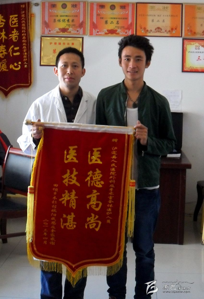 筆者懷著敬佩的心情與大家聊這些事情,值班的護士說:“類似這樣的情景在醫(yī)院經常發(fā)生。高醫(yī)生為那些關節(jié)病人置換關節(jié)手術才叫精彩,醫(yī)院經常收到錦旗,場景讓人感動。”原來幾年前高醫(yī)生通過在華西醫(yī)科大學的學習,回來后成功開展了四肢骨折內固定術120余臺次,髖關節(jié)置換術6例,這可是甘孜州所有醫(yī)院中能夠獨立成功開展全髖關節(jié)置換術的唯一醫(yī)院。最特別的是這些病人大多都是老年患者,一旦醫(yī)好,家屬都會按照老人的意愿送來錦旗。比如家住瀘定縣城區(qū)93歲陶樹森老人,2008年10月作股骨頭置換術康復得以行走;家住瀘定縣田壩鄉(xiāng)90歲郭安鳳老人,2013年5月行股骨打轉子骨折重建術,康復得以行走;還有家住瀘定縣烹壩鄉(xiāng)70歲的李有蓮老人,2013年5月行全髖置換術,康復得以行走。如果這些病人在成都醫(yī)治,不僅需要承擔高昂的醫(yī)療費用,護理費用,還要承受路途奔波的痛苦,治愈的快樂可想而知。