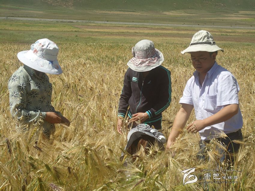 甘孜縣援藏干部人才下鄉(xiāng)估測青稞產(chǎn)量。