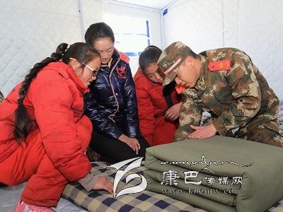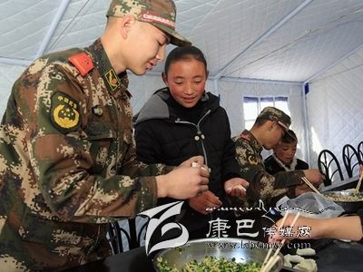 12月7日,康定6.3級地震后的第二個(gè)周末,這對甘孜州西康福利學(xué)校的孩子們來說,是一個(gè)開心的日子。當(dāng)天上午,武警甘孜州支隊(duì)抗震救災(zāi)一線官兵來到學(xué)校,與在這里生活學(xué)習(xí)的孤兒和特困生一起包餃子,度過了一個(gè)溫暖的周末。12歲的措姆性格靦腆,她把餃子皮攤在手心,一旁的戰(zhàn)士王兵舀了一勺餡放在餃子皮中央,可措姆怎么也沒法把餃子包得像模像樣。在王兵的輔導(dǎo)下,措姆很快學(xué)會包了一個(gè)漂亮的餃子。在學(xué)包餃子過程中,五六十雙手就包出五六十種餃子,看著自己的勞動成果,孩子們特別開心。吃過午飯,武警官兵們還精心安排了疊被子活動,在帳篷內(nèi)教孩子們怎么疊軍被。大家一起動手,你教我疊,熱鬧極了。(宋科霖 /文 郝勇 /攝)