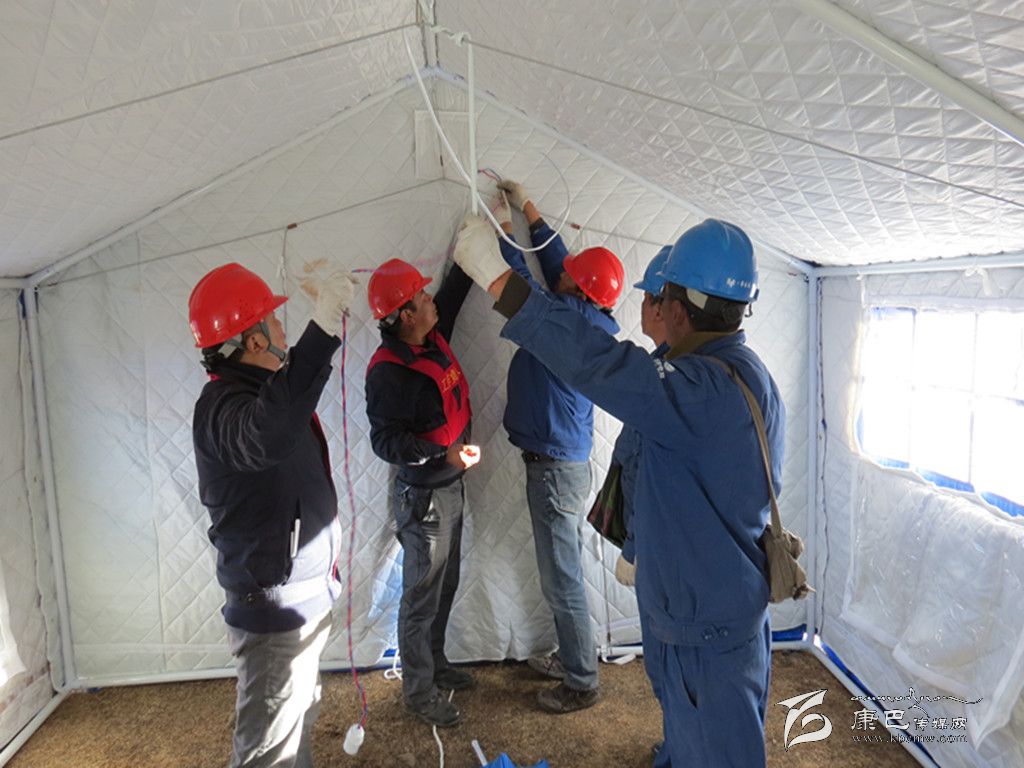 奪拉二村有4個(gè)變壓器臺(tái)區(qū),其中2個(gè)臺(tái)區(qū)為人員較多的木雅祖慶學(xué)校,地震使學(xué)校住宿樓變?yōu)槲7浚=?000名學(xué)生轉(zhuǎn)移至學(xué)??盏厣系陌仓命c(diǎn)。為了讓安置點(diǎn)內(nèi)的受災(zāi)師生和應(yīng)急指揮中心盡快用上電,黨員突擊搶險(xiǎn)小分隊(duì)不僅要在安置點(diǎn)迅速安裝應(yīng)急照明設(shè)施,同時(shí)還要從圍墻和學(xué)校食堂的樓頂上重新布放近3段2公里長的臨時(shí)電源線。學(xué)校圍墻因地震而搖搖欲墜,稍微用點(diǎn)力,墻、磚塊或水泥就會(huì)掉下來,面臨這一難題,公司黨總支沉著應(yīng)對(duì),迅速組織塔公供電所與新都橋供電所的黨員干部趕往震中,同時(shí)安排其余供電所的黨員干部迅速增援。先期到達(dá)的救援人員在余震不斷發(fā)生的情況下,對(duì)受損供電設(shè)備及線路進(jìn)行了緊急處理;在后期人員趕到后,公司黨總支迅速研究制定工作方案,科學(xué)分工:第一組黨員突擊搶險(xiǎn)隊(duì)負(fù)責(zé)隱患排查,第二組黨員突擊搶險(xiǎn)隊(duì)負(fù)責(zé)電線布放,第三組黨員突擊搶險(xiǎn)隊(duì)負(fù)責(zé)救災(zāi)帳篷的照明安裝。在三個(gè)小組隊(duì)員的共同努力下,用近三個(gè)小時(shí)的時(shí)間就解決了應(yīng)急指揮中心、醫(yī)療隊(duì)和臨時(shí)安置點(diǎn)的照明安裝這一難題。
