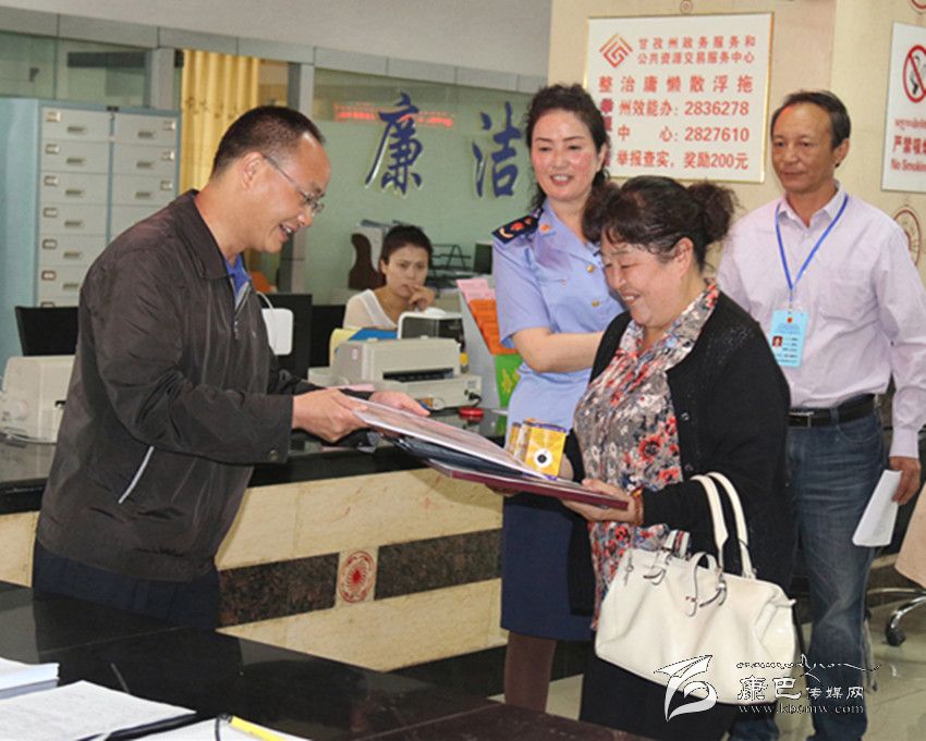 州政府副州長何飚為我州首次推行“一窗受理 , 三證統發(fā)”頒證。