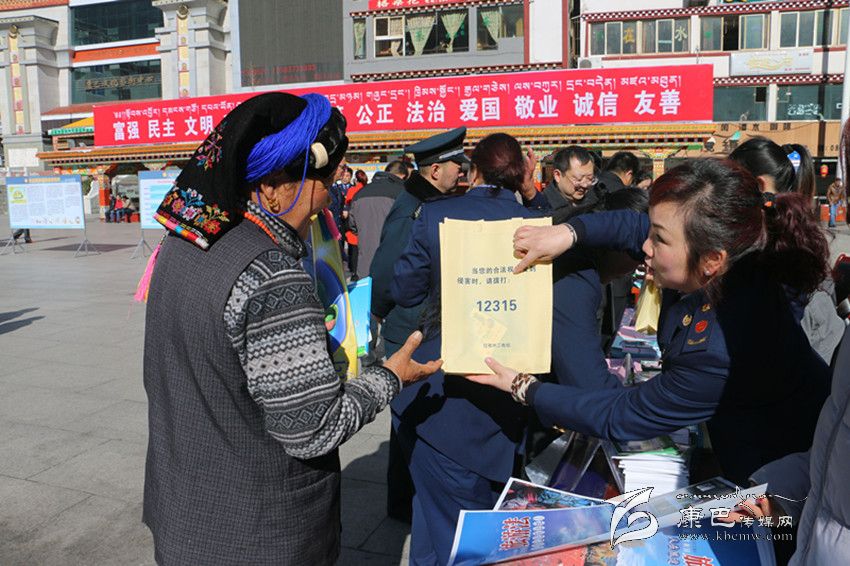 活動(dòng)現(xiàn)場(chǎng),中石油公司職工開(kāi)展了“中石油加油站點(diǎn)質(zhì)量、計(jì)量服務(wù)誠(chéng)信經(jīng)營(yíng)承諾”活動(dòng)。州工商局的工作人員現(xiàn)場(chǎng)為市民講解新《中華人民共和國(guó)消費(fèi)者權(quán)益保護(hù)法》的亮點(diǎn)是什么、怎樣維權(quán)等知識(shí)。州煙草公司、康定市食品藥品工商質(zhì)監(jiān)局在廣場(chǎng)上設(shè)立了假冒偽劣商品展示區(qū),通過(guò)現(xiàn)場(chǎng)講解讓消費(fèi)者提高辨假識(shí)劣的能力。圖為宣傳活動(dòng)現(xiàn)場(chǎng)工商部門(mén)工作人員現(xiàn)場(chǎng)為市民講解。