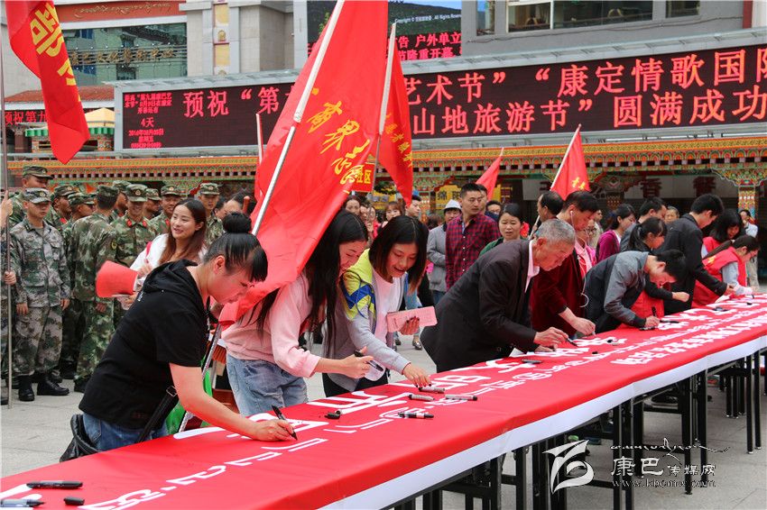 本網(wǎng)訊(記者 宋志勇 文/圖)8月5日,由州文明辦、州直工委、康定市文明辦共同舉行的康定地區(qū)迎“康巴藝術(shù)節(jié)”爭當(dāng)文明市民簽名暨志愿服務(wù)活動在情歌廣場正式拉開帷幕。來自康定地區(qū)社會各界的青年志愿者服務(wù)隊、巾幗志愿者服務(wù)隊、工商界志愿者服務(wù)隊、衛(wèi)生系統(tǒng)志愿者、駐康部隊志愿者服務(wù)隊、州級機(jī)關(guān)志愿者服務(wù)隊、市直機(jī)關(guān)志愿服務(wù)隊、環(huán)衛(wèi)志愿者服務(wù)隊等共計1000余人參與。