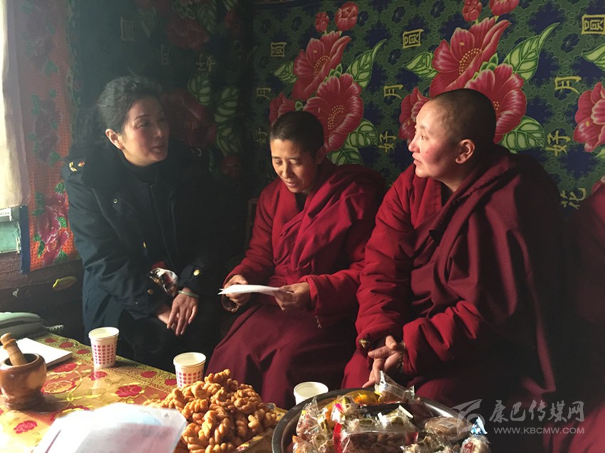 州工商局黨組書記、局長丁淑娟進(jìn)寺廟講解新《消法》知識。