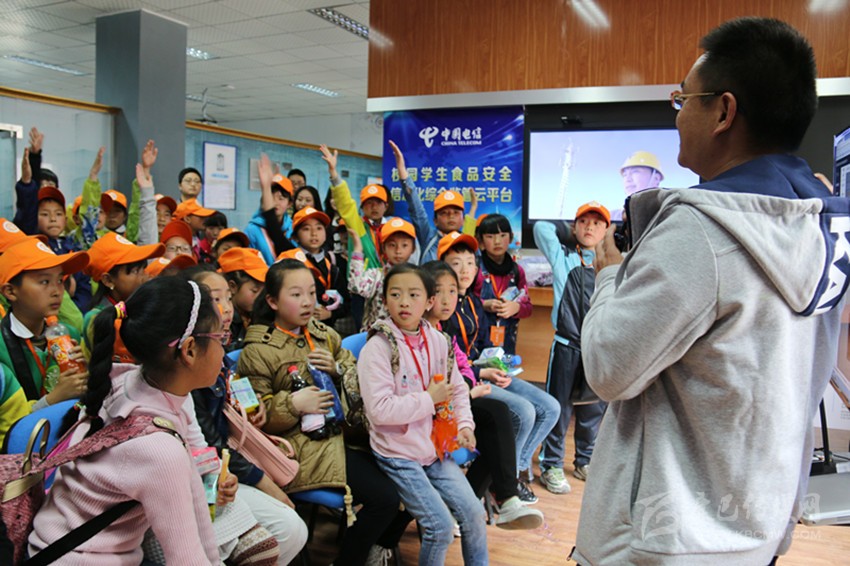 輔導(dǎo)老師為小記者講解電信知識(shí)。