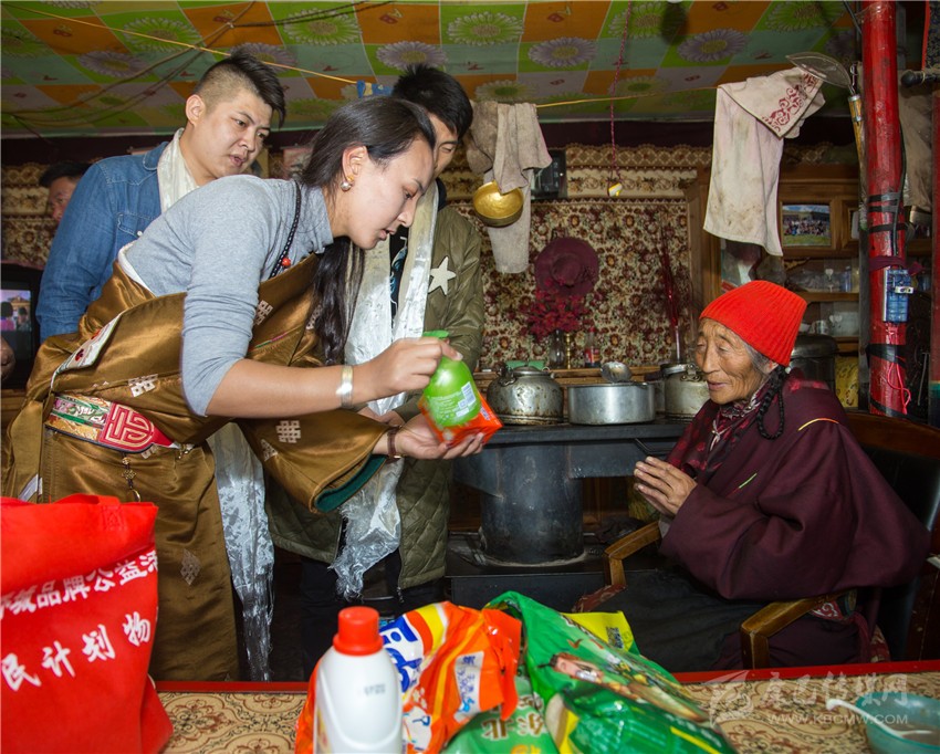 為了及時將物資送到群眾手中,公益小組一行當日凌晨4點便從成都出發(fā),于下午1點到達走訪地石渠縣。隨后,公益小組不顧舟車勞頓,堅持走訪了10戶此次“新牧民養(yǎng)成計劃”示范家庭,為他們送上了生活禮包及文明禮包,并送上了節(jié)日的祝福。年過七旬的卓嘎是本次“新牧民養(yǎng)成計劃”示范戶之一,體弱多病的她堅持要迎接公益小組的到來,并獻上哈達。收到物資后她激動地說,兩年前華僑城來到石渠縣,為他們帶來了新棉被,那個冬天他們一點都不冷,現在又送來了糧食和生活用品,讓他們可以過上更好的生活。