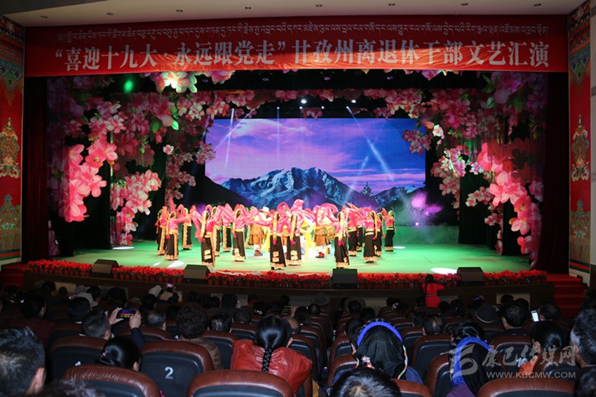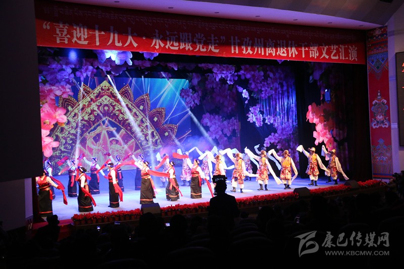 本網(wǎng)訊(記者 宋志勇 文/圖)9月29日,由州委、州政府主辦,州委組織部、州委老干部局、州文體廣新局承辦的“喜迎十九大、永遠(yuǎn)跟黨走”全州離退休干部文藝匯演在康定劇場(chǎng)舉行,旨在謳歌黨在藏區(qū)的豐功偉績(jī),頌揚(yáng)甘孜兒女今天的幸福生活。州級(jí)退休老領(lǐng)導(dǎo)胡克禮、吞珠、寧紹武、便巴傾批、李明璽、何濤、李其福、郭昌平以及州委老干部工作領(lǐng)導(dǎo)小組成員單位領(lǐng)導(dǎo)和相關(guān)部門(mén)領(lǐng)導(dǎo)出席并參加活動(dòng)。州委常委、宣傳部長(zhǎng)相洛出席活動(dòng)并致辭,省委老干部局副局長(zhǎng)史可,州人大常委會(huì)副主任白蘇英、州政府副州長(zhǎng)鄭天強(qiáng)、州政協(xié)副主席陳洪暴和特邀嘉賓涼山州委組織部副部長(zhǎng)、老干局局長(zhǎng)楊國(guó)敏出席并觀看演出。