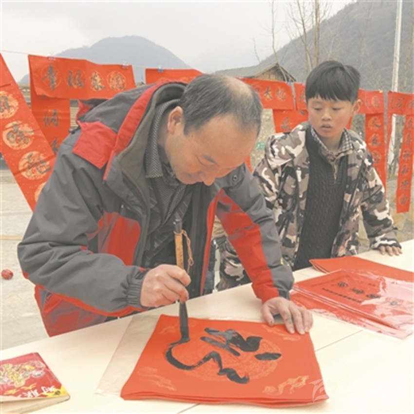 書法家為群眾寫春聯(lián)。