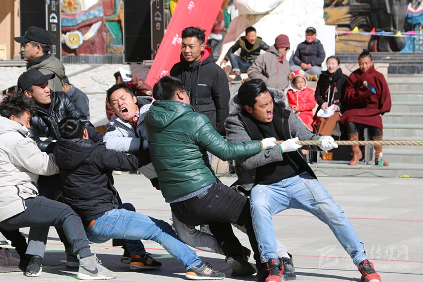 趣味比賽將干部職工和高城鎮(zhèn)農(nóng)牧民群眾分成若干個(gè)小組進(jìn)行比賽,“翻山越嶺 ”游戲,男生普遍輕松應(yīng)對(duì),女生由于沒有助跑,一直栽在“山坡上”翻不過去,引得現(xiàn)場(chǎng)觀眾大笑,最后在現(xiàn)場(chǎng)觀眾的齊聲加油下終于翻過。跳繩、袋鼠跳,參賽選手較勁比拼?!坝赂艺摺庇螒?,組員需先轉(zhuǎn)10個(gè)呼啦圈、踢毽10下、吹爆一個(gè)氣球、跳繩10下、喝完一瓶330毫升的礦泉水進(jìn)行接力,現(xiàn)場(chǎng)氣氛熱烈,觀眾的加油吶喊聲此起彼伏。“坦克大戰(zhàn)”游戲考驗(yàn)了大家協(xié)調(diào)配合能力,把觀眾的心都提到嗓子眼。最引人注目的拔河比賽開始了,每個(gè)隊(duì)都帶著勢(shì)在必得的勇氣上場(chǎng),結(jié)果年輕小伙們卻輸給了高城鎮(zhèn)農(nóng)牧民代表隊(duì)。