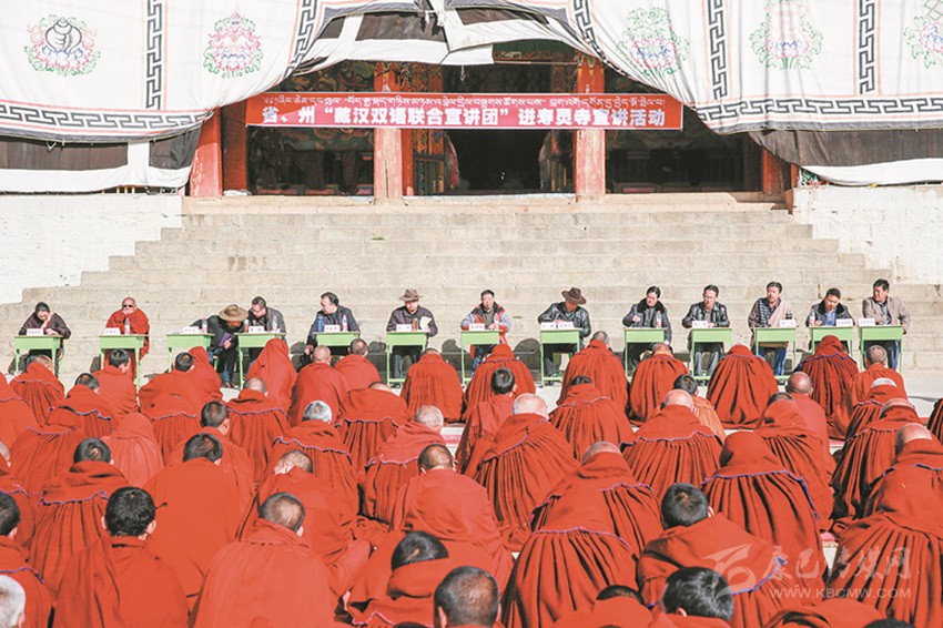 在法律進(jìn)寺廟方面,我州持續(xù)深化法律進(jìn)寺廟“四進(jìn)七有”活動(dòng),健全完善寺廟法治宣傳欄、法律圖書角、法律服務(wù)聯(lián)系點(diǎn)、法律明白人管理等工作制度,建成寺廟法治宣傳欄598個(gè)、圖書角504個(gè)、法律服務(wù)聯(lián)系點(diǎn)489個(gè),培訓(xùn)培養(yǎng)寺廟“法律明白人”947人;組織開展《憲法》《刑法》《刑事訴訟法》《國(guó)家安全法》《治安管理處罰法》《道路交通安全法》《宗教事務(wù)條例》進(jìn)寺廟專項(xiàng)活動(dòng),全州共開展法律入寺宣傳1900余場(chǎng)次,覆蓋寺廟532座、僧尼8萬(wàn)余人次。