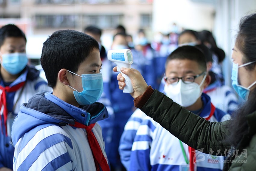 有了家長的積極配合,學(xué)校的防控工作進(jìn)行的相當(dāng)順利,4月12日早上9時,康定市民族中學(xué)的校門口處,學(xué)生們自覺有序保持距離,并安靜排隊,積極配合測溫教師做好體溫檢測,體溫檢測合格后再由各年級班主任在學(xué)校大門處與保安配合引導(dǎo)入校,列隊間隔一米向前行進(jìn),實行三個年級錯時錯峰有序進(jìn)入。