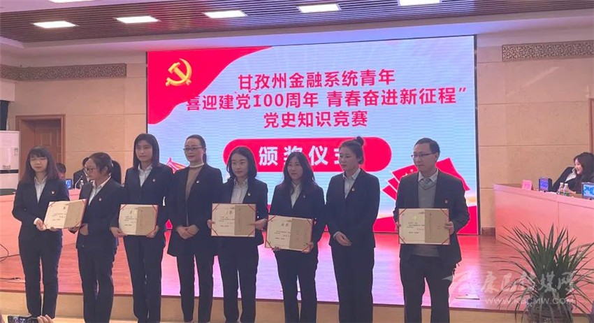 本網(wǎng)訊(陳建軍 江承艷)4月27日,農(nóng)行甘孜分行黨史學(xué)習(xí)青年代表競賽小組在2021年甘孜州金融系統(tǒng)青年“喜迎建黨100周年 青春奮進(jìn)新征程”黨史知識(shí)競賽中一舉斬獲三等獎(jiǎng)。該知識(shí)競賽由人民銀行甘孜州中心支行舉辦,甘孜州金融機(jī)構(gòu)15支代表隊(duì)參加競賽,農(nóng)行甘孜分行黨委副書記、專家、副行長周莉萍及其他金融機(jī)構(gòu)負(fù)責(zé)人出席現(xiàn)場并為所有選手加油鼓勁。競賽分為初賽和決賽兩個(gè)部分,初賽采用閉卷考試,決賽為現(xiàn)場搶答、必答等,甘孜分行青年代表隊(duì)以98分初賽筆試成績殺入決賽。在決賽環(huán)節(jié)中,農(nóng)行青年員工代表積極搶答,沉著應(yīng)戰(zhàn),流利回答,獲得裁判好評(píng)以及現(xiàn)場觀眾雷鳴般的掌聲。經(jīng)過激烈角逐,農(nóng)行代表隊(duì)取得個(gè)人第四名和團(tuán)體三等獎(jiǎng)的優(yōu)異成績?;顒?dòng)最后,全體參賽、觀賽人員齊唱《唱支山歌給黨聽》,表達(dá)了對(duì)共產(chǎn)黨建黨100周年的深切祝福。