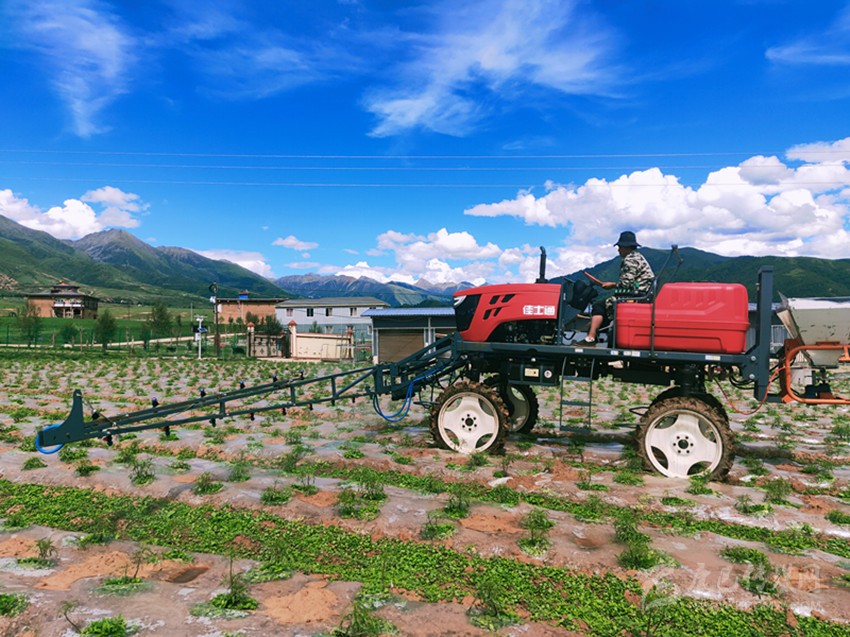 澤仁措務工之處是位于他家附近的白玉縣贈科現(xiàn)代農(nóng)業(yè)產(chǎn)業(yè)園區(qū)的萬畝核心種植基地,園區(qū)內(nèi)推廣流轉種植了藏菊花、藜麥、高原有機蔬菜、中藏藥材等共4500畝,園區(qū)主打種植藜麥、菊花等農(nóng)特產(chǎn)品,目前已實現(xiàn)規(guī)?;?、連片化、機械化種植。種植基地為11個建檔立卡戶提供了長期固定崗位,園區(qū)建設通過土地流轉、村民就近務工等渠道,促進助農(nóng)增收多樣化,已兌現(xiàn)勞務費180余萬元。同時,贈科鄉(xiāng)的依里村、上比沙村、下比沙村通過土地流轉,兩年多來憑借土地流轉獲得280余萬元的收益。