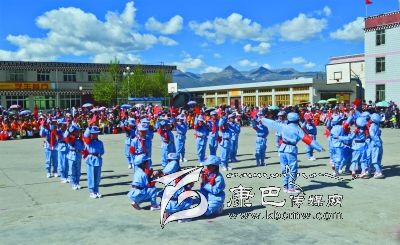 康定縣少先隊員代表藏區(qū)少先隊員參加央視“六一”晚會。