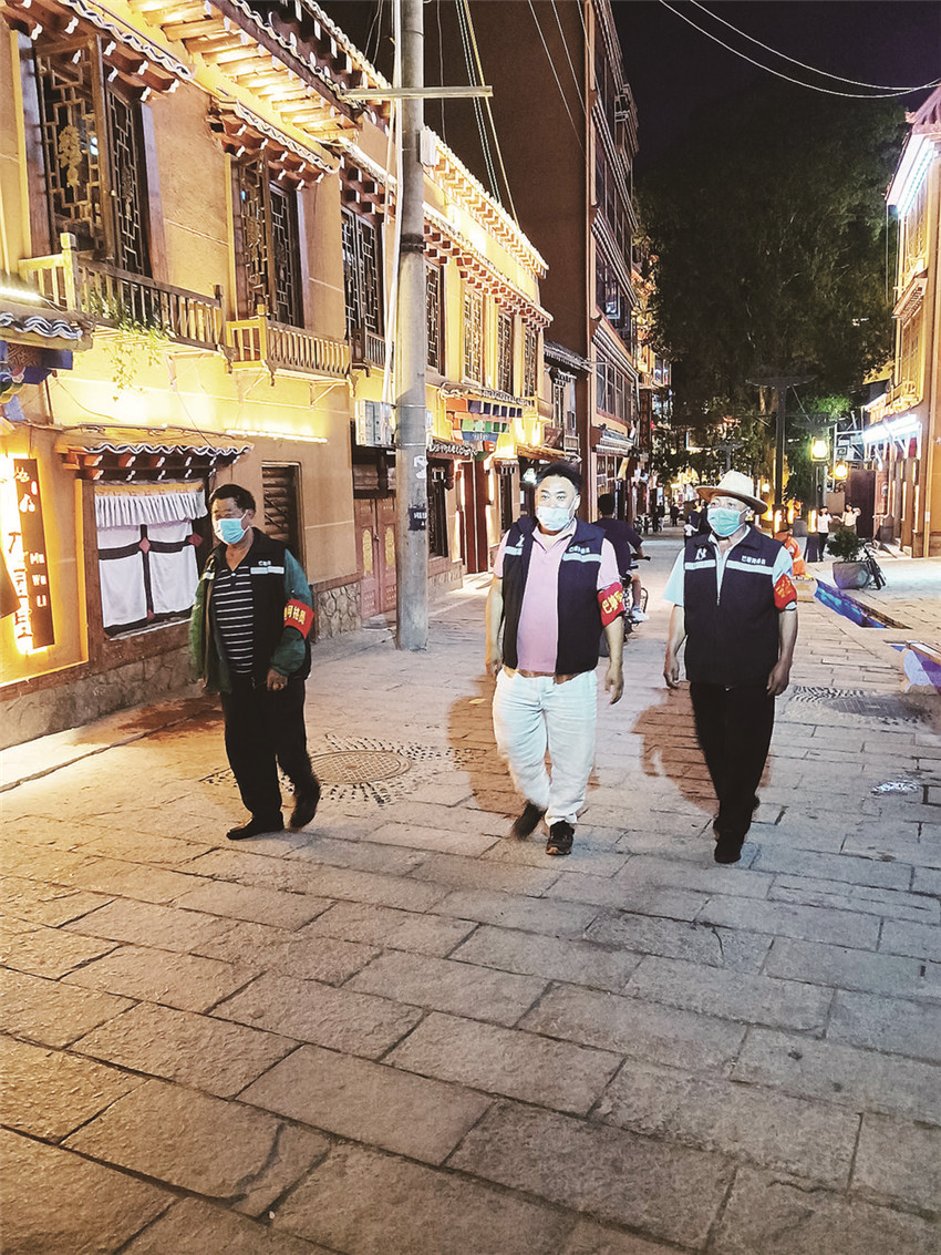 巴塘縣網(wǎng)格員夏孟云和同事們開展夜間巡邏。