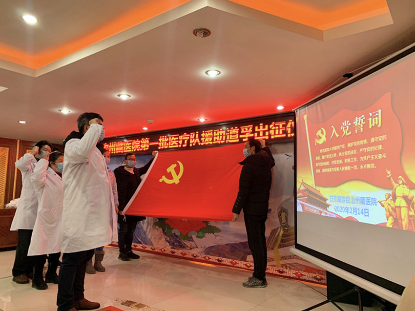 事實證明,州藏醫(yī)院的擔心和提前準備完全是必要的。2020年2月,道孚縣爆發(fā)疫情,全縣進入管控狀態(tài)。看著自己的家鄉(xiāng)發(fā)生疫情,州藏醫(yī)院的醫(yī)護人員心急如焚。盡管對這未知的病毒心中沒底,但沒人退縮,全院上下皆積極請戰(zhàn)。在醫(yī)院黨委再次申請下,州抗疫指揮部研究同意了藏醫(yī)院參與抗疫工作,2月14日,在時任副院長、主任藏醫(yī)師江吉村的帶領(lǐng)下,藏醫(yī)診療隊奔赴道孚。這是新中國成立以來,藏醫(yī)首次參加的大型抗疫阻擊戰(zhàn)。