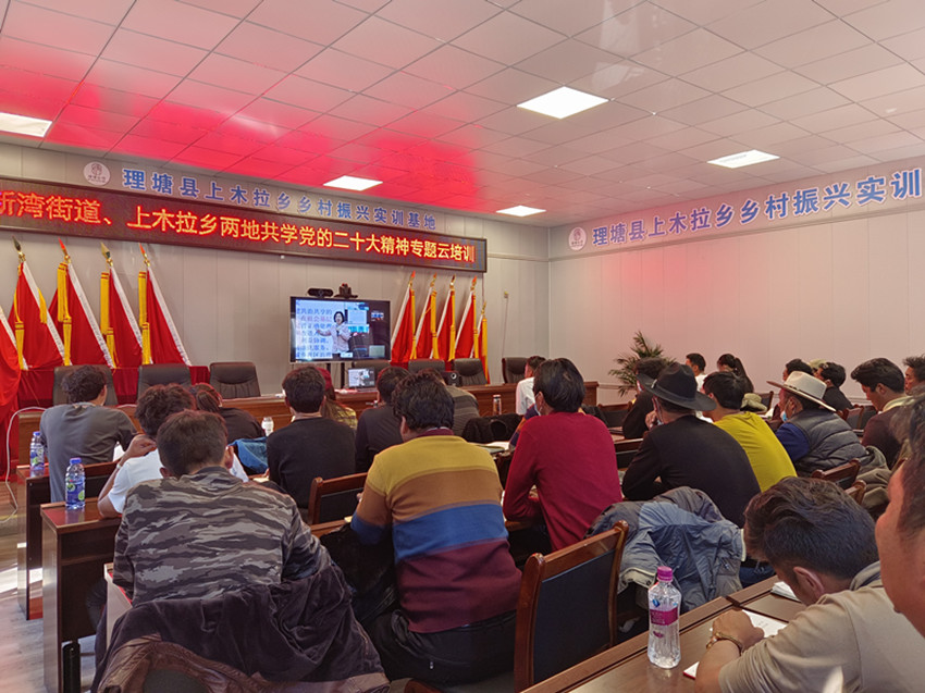 甘孜代表團與金牌獲得者班瑪翁丹(右五)合影。