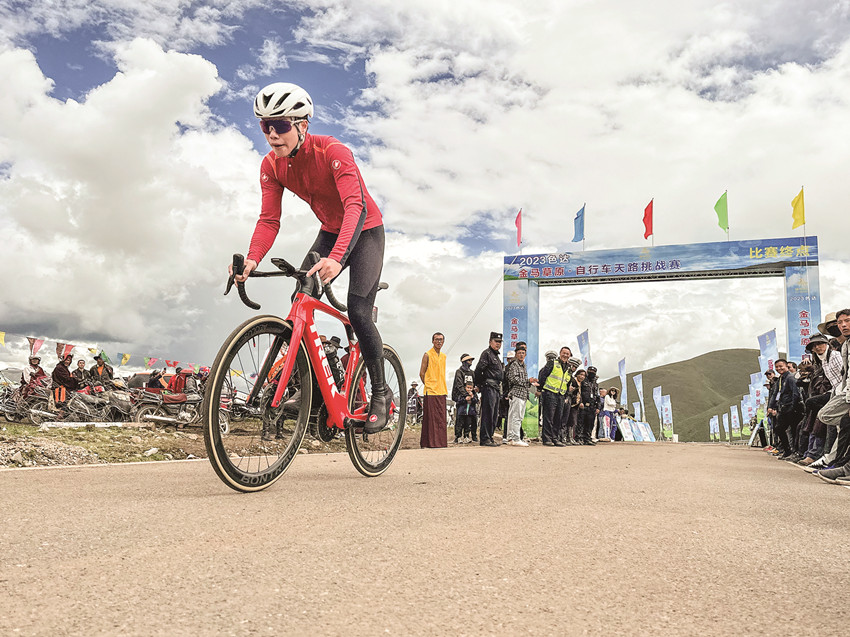 2023年8月11日,作為“福地色達(dá)·金馬之邀”草原游牧文化遺產(chǎn)體驗(yàn)季系列活動(dòng)之一的金馬草原自行車(chē)天路挑戰(zhàn)賽在格薩爾文化藝術(shù)中心鳴槍開(kāi)賽。100多名來(lái)自全國(guó)各地的自行車(chē)專(zhuān)業(yè)運(yùn)動(dòng)員及自行車(chē)愛(ài)好者齊聚福地色達(dá),共赴一場(chǎng)別開(kāi)生面的體育盛宴。 一位參賽選手激動(dòng)地說(shuō):“我是從湖北武漢過(guò)來(lái)的,第一次參加海拔這么高的比賽,感覺(jué)很好、很棒。一路風(fēng)景超美,美呆了!如果還有這樣的比賽,我一定會(huì)再來(lái)的!”