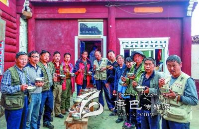 就著簡(jiǎn)單的飯菜,攝影隊(duì)員們端起了碗筷