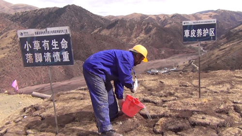 據(jù)介紹,施工前工作人員先將施工區(qū)域的原生草皮進(jìn)行剝離,移至他處并進(jìn)行養(yǎng)護(hù),待施工結(jié)束后,再將剝離的草皮移回原處進(jìn)行回鋪;對開挖造成地表植被破壞的地段播撒適合高原生長的草籽,直到長出綠草。現(xiàn)場的施工人員介紹說,塔基開挖過程中,先將熟土(表土)、生土分開堆放,并采取隔離(鋪設(shè)棕墊等)、攔擋、覆蓋等措施,回填時(shí)先將生土回填,熟土最后置于表面,以保證植被的恢復(fù)。