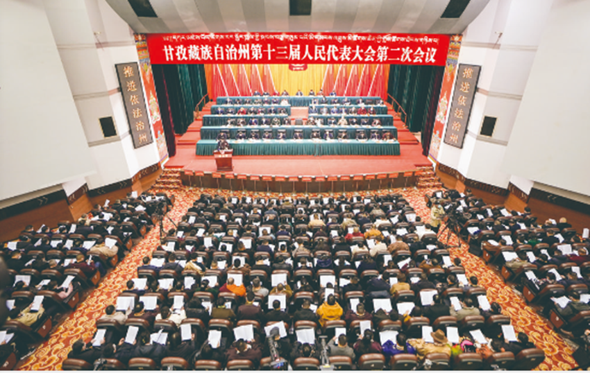 新時代勇?lián)率姑抡鞒陶宫F(xiàn)新作為。2024年是新中國成立75周年,是全國人民代表大會成立70周年,州人大及其常委會要堅持以習(xí)近平新時代中國特色社會主義思想為指導(dǎo),深入學(xué)習(xí)貫徹黨的二十大精神和習(xí)近平總書記對四川工作系列重要指示精神,全面貫徹省委、州委全會決策部署,緊緊圍繞州委總體工作格局,豐富和發(fā)展全過程人民民主甘孜實踐,在堅定正確政治方向上更加旗幟鮮明,在圍繞中心服務(wù)大局上更加彰顯擔當,在聯(lián)系代表服務(wù)群眾上更加傾心用情,在推進人大事業(yè)發(fā)展上更加勇于創(chuàng)新,讓人民代表大會制度這一人類政治制度史上的偉大創(chuàng)造扎根雪域高原,綻放更加燦爛的花朵。
