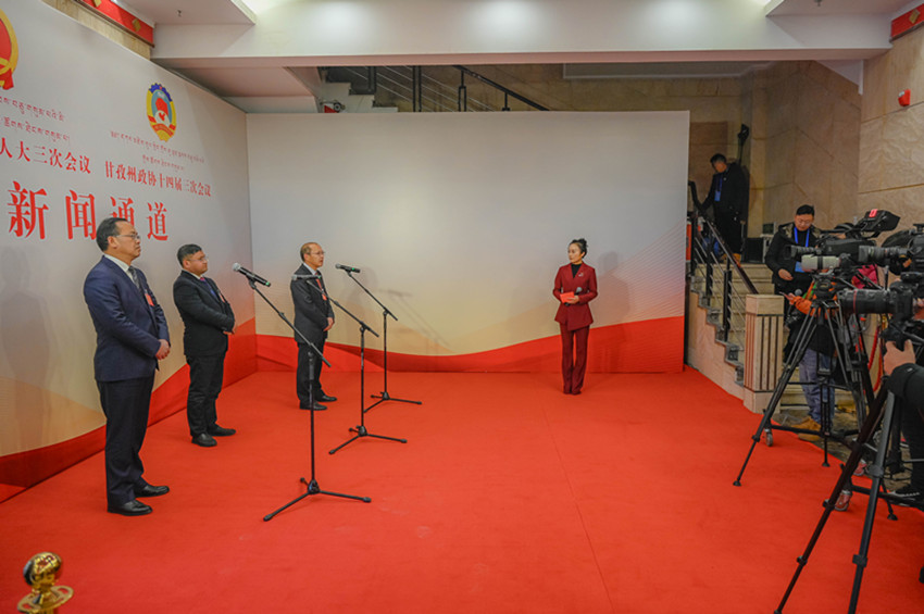 中午12時(shí),在完成各項(xiàng)議程后,開幕會(huì)結(jié)束。走出會(huì)場(chǎng),委員們心潮澎湃、豪情滿懷;接下來(lái)的會(huì)期里,他們將建諍言、謀良策、凝共識(shí),讓更多“金點(diǎn)子”轉(zhuǎn)化為服務(wù)全州中心大局的“金鑰匙”。而與會(huì)場(chǎng)僅一墻之隔的劇場(chǎng)門廳里,首場(chǎng)“委員通道”大幕開啟,5名委員走到話筒前,回答記者提問。