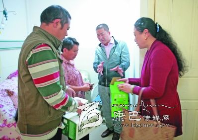 雖然大家都在獻(xiàn)愛心,但這點錢也顯得杯水車薪。結(jié)對認(rèn)親小分隊回到報社后,立即向報社黨委作了匯報,第二天中午,報社派出人員代表黨委、編委會、結(jié)對支部和全體職工,到州人民醫(yī)院探望蘇國全,這才出現(xiàn)了本文開頭的一幕。在病房照顧蘇國全的妻子和女兒看見“親戚”單位來了人,眼里閃動著激動的淚光。“這幾天借來的錢都要用光了,如果停藥就會有危險。”蘇國全的妻子饒大姐說。報社領(lǐng)導(dǎo)安慰她說,“不要急,我們大家一起想辦法。”并將全社職工捐贈的10000元現(xiàn)金交到她的手中。當(dāng)她從報社領(lǐng)導(dǎo)手中接過愛心款時,母女倆的淚水奪眶而出,連聲感謝。
