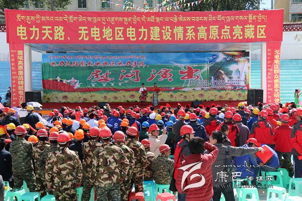 本網(wǎng)訊(見習(xí)記者 陳雪峰 文/圖) 8月29日,由中共甘孜州委、甘孜州人民政府和國網(wǎng)四川省電力公司主辦,州委宣傳部、州發(fā)改委和中共甘孜縣委、甘孜縣人民政府共同承辦的“電力天路”暨無電地區(qū)電力建設(shè)慰問演出活動(dòng)在甘孜縣舉行。州政府副州長張平森和國網(wǎng)四川省電力公司副總經(jīng)理丁燕生等蒞臨慰問演出現(xiàn)場。