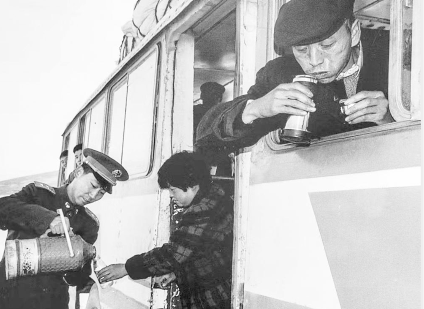 90年代,官兵為過(guò)往車(chē)輛提供開(kāi)水。
