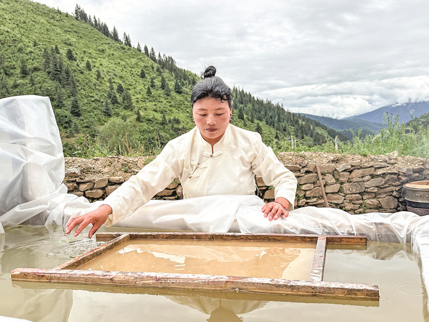 “我從15歲開始學(xué)習(xí)藏紙制作技藝,到現(xiàn)在已經(jīng)20年了……”
