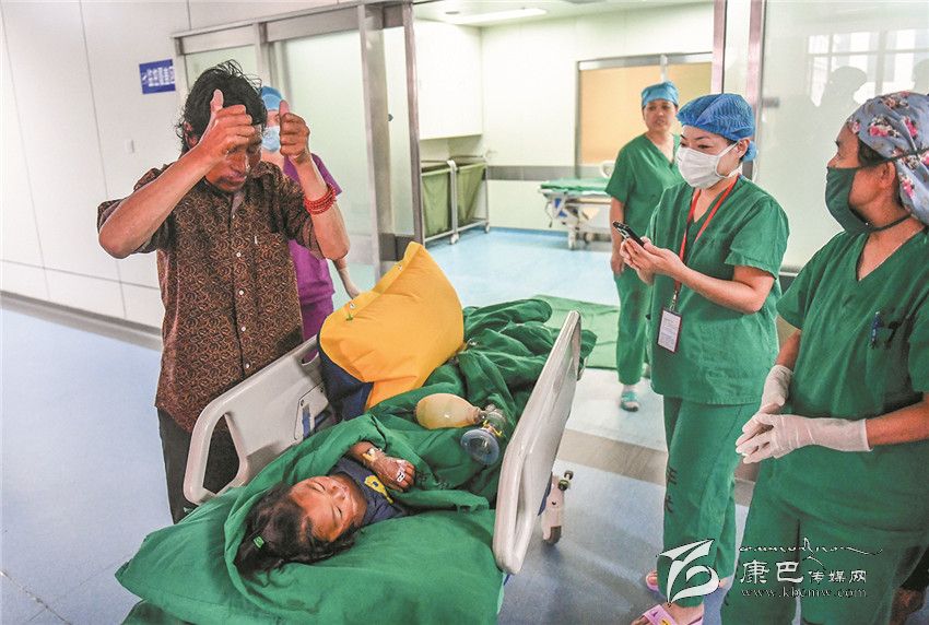 8月23日,來自四川省甘孜藏族自治州甘孜縣兩歲的藏族男孩白瑪日扎在哈爾濱市第一醫(yī)院成功進(jìn)行唇腭裂修復(fù)手術(shù)。白瑪日扎的父母是牧民,常年在大山上放牧,兩個(gè)月才能下山見一次孩子。白瑪日扎和爺爺生活在甘孜縣里。 8月中旬以來,哈爾濱市第一醫(yī)院攜手“中國宋慶齡基金會”、“一笑慈善基金”項(xiàng)目開展大型公益活動,特邀國際頜面外科、美容整形外科、麻醉科等醫(yī)療專家團(tuán),免費(fèi)為貧困家庭唇腭裂兒童手術(shù)治療,并為特困家長和孩子提供免費(fèi)的食宿,白瑪日扎便是免費(fèi)接受救治兒童中的一員。8月23日,白瑪日扎的爺爺白瑪多吉(左)對醫(yī)護(hù)人員伸出大拇指表示感謝。