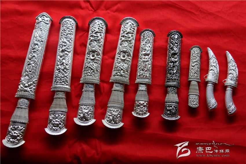 段承長(zhǎng)開創(chuàng)的“九龍·飛鷹”刀品牌從2009年起已經(jīng)連續(xù)兩屆被評(píng)為甘孜州知名商標(biāo)。九龍縣民族工藝藏刀“飛鷹刀”始創(chuàng)于公元1902年,至今已有一百多年的歷史,段承長(zhǎng)是家族第三代傳承人。經(jīng)過(guò)幾代人的反復(fù)研究和不斷努力,已經(jīng)將“飛鷹刀”這種帶有民族特色的工藝藏刀,打造成為了民族服飾裝飾以及生活必須為主要用途的工藝品,并且具有一定的收藏價(jià)值。在九龍做客,主人家視你為貴客,那么在你離開之際必將贈(zèng)送你一把“飛鷹刀”,以代表珍貴之意。在九龍本地,由于“飛鷹刀”鍛打精致、鐫刻細(xì)膩、色彩奪目、并附有藏文,系有五顏六色刀穗,形成別具一格的藏族工藝品。在朋友喬遷、結(jié)婚或喜生嬰兒時(shí),送上一把“飛鷹刀”會(huì)令主人感到格外高興。
