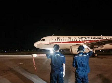 8月9日凌晨5時26分,民航第一個抗震救災(zāi)加班航班——川航3U8111運送救災(zāi)人員及物資,從成都起飛前往九寨,返程將接滯留旅客回蓉。