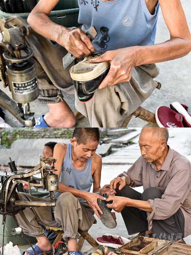 “三娃,今天來(lái)得早嘛!”尚未坐定,便有鄉(xiāng)鄰拿著鞋子走過(guò)來(lái),“鞋跟脫膠了,修一哈?!?/span>