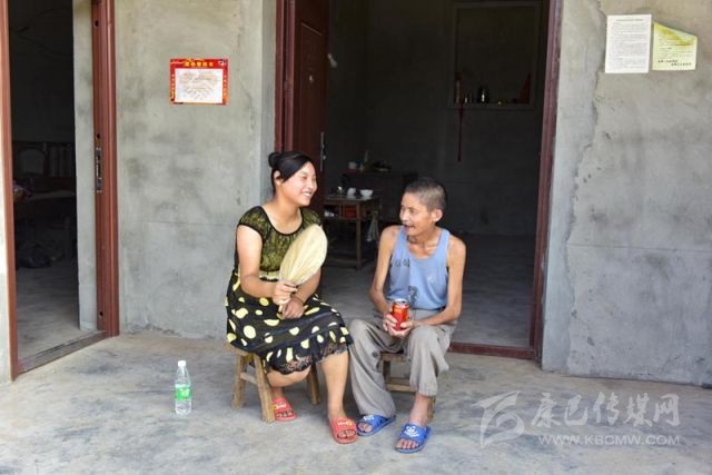 8月15日,南部縣中心鄉(xiāng)漏米巖村周強(qiáng)善新家,周強(qiáng)善與女兒在自家門前擺龍門陣。攝影 張可凡