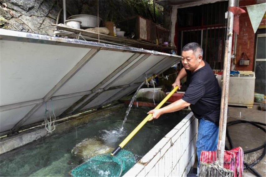 在各方幫扶下,2015年,朱國(guó)富借了10多萬(wàn)元,在家門口開起了“黑灣魚莊”。農(nóng)家樂開起來了,日子又開始紅火起來。
