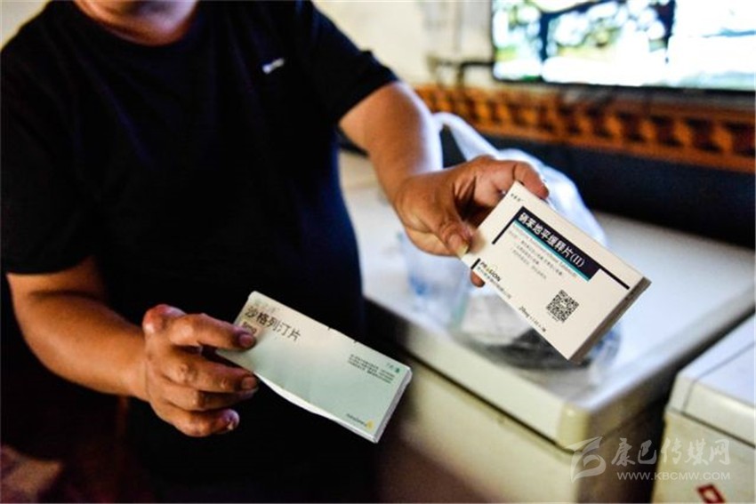 朱國(guó)富長(zhǎng)期疾病緾身,每天都要吃藥。張可凡攝。
