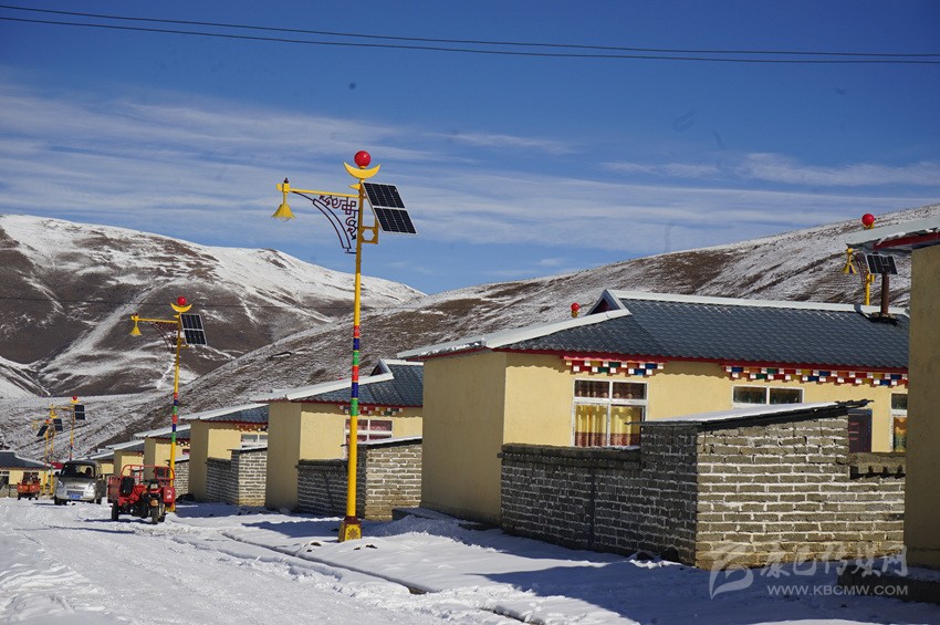 11月20日,色達縣下起了大雪,色柯鎮(zhèn)安康社區(qū)一棟棟整齊劃一的藏式小別墅炊煙裊裊,在藍天的映襯下顯得格外漂亮,新修的水泥路通到家家戶戶,106戶牧民不久前剛搬進新房。