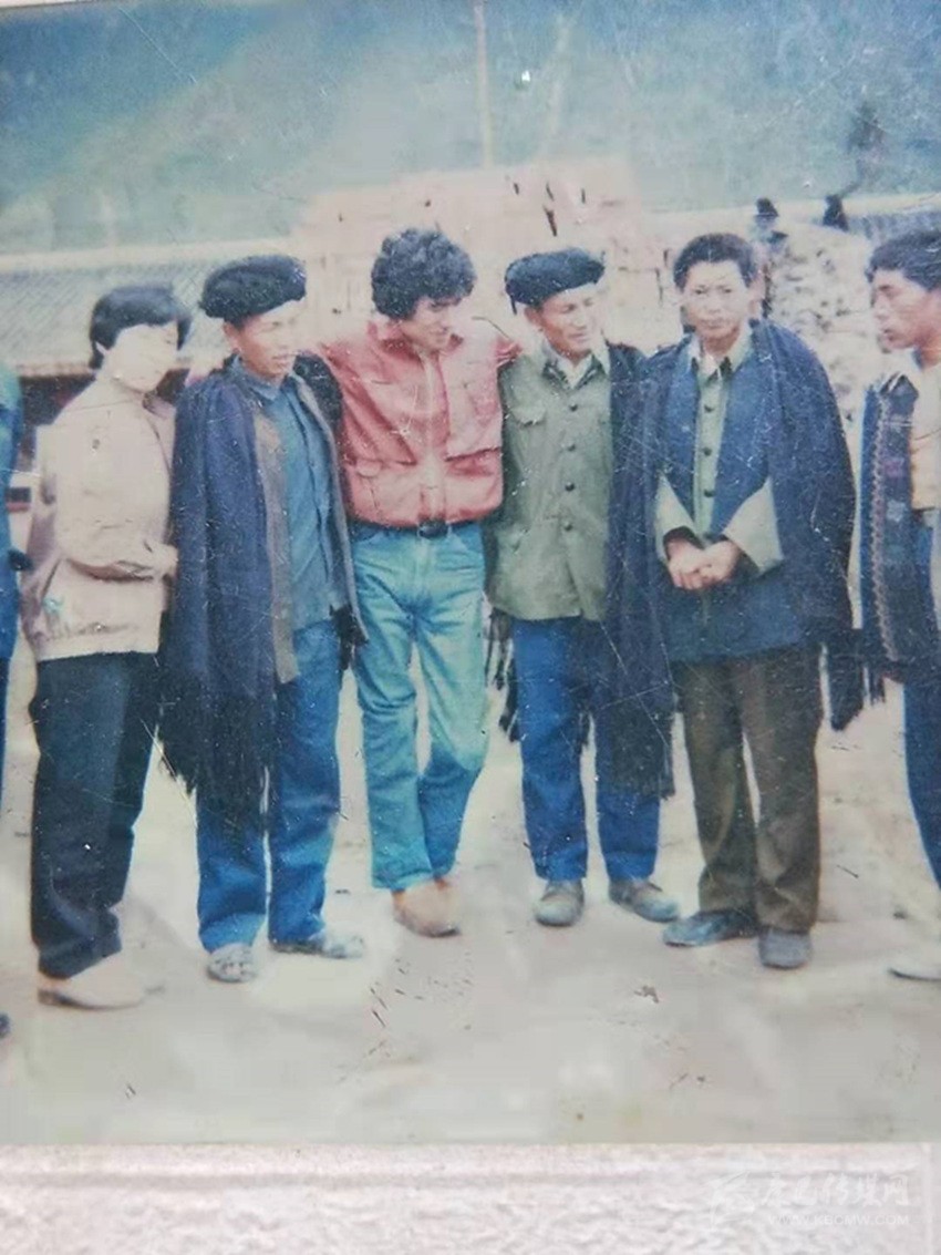 1983年,裝上假肢的松田宏也赴海螺溝看望感謝磨西公社的四位救命恩人。 資料圖片