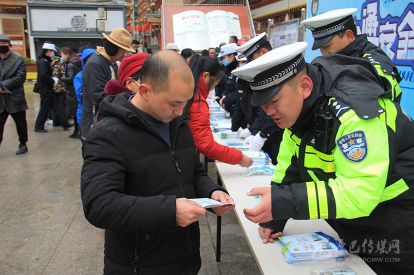 交警在康定情歌廣場開展“一盔一帶”安全宣傳活動(dòng)。