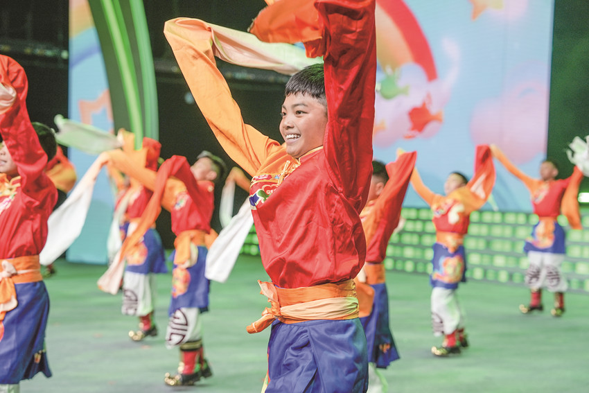 日前,32名平均年齡11歲的孩子剛抵達(dá)成都,就馬不停蹄地趕往演播廳走臺(tái)。臺(tái)上,孩子們不厭其煩地重復(fù)著每一個(gè)動(dòng)作,力求將每一個(gè)細(xì)節(jié)做到完美;臺(tái)下,帶隊(duì)老師們則全神貫注地關(guān)注著舞臺(tái)的整體效果,仔細(xì)審視著孩子們的站位、表情等,不放過任何一個(gè)可以改進(jìn)的地方。