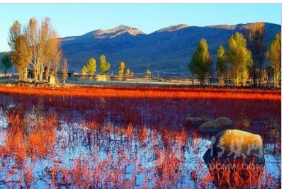 距稻城縣城金珠鎮(zhèn)28公里的桑堆小鎮(zhèn)風(fēng)景綺麗,在公路沿線的牧場(chǎng)開(kāi)闊平展,河流平緩如鏡。遙望遠(yuǎn)處,在起伏的山巒間散落著村落、牧人、牛羊,呈現(xiàn)一派寧?kù)o祥和的景象。公元1144年前,一世噶瑪巴·都松欽巴覺(jué)悟贊譽(yù):“我走遍藏區(qū),來(lái)到此地。這里風(fēng)景秀美,牧草豐茂,六畜興旺,佛光普照。我愿在此修建寺廟成就功德”。金秋十月的桑堆紅草灘總是讓你感覺(jué)膠卷不夠用?!?/p>